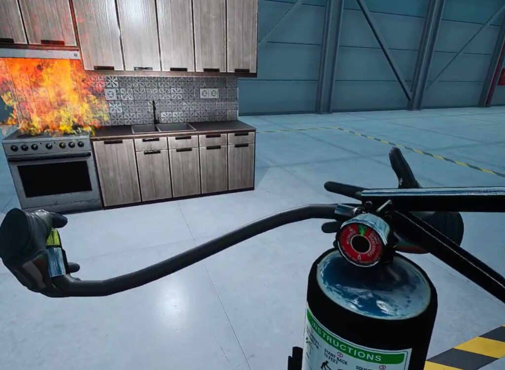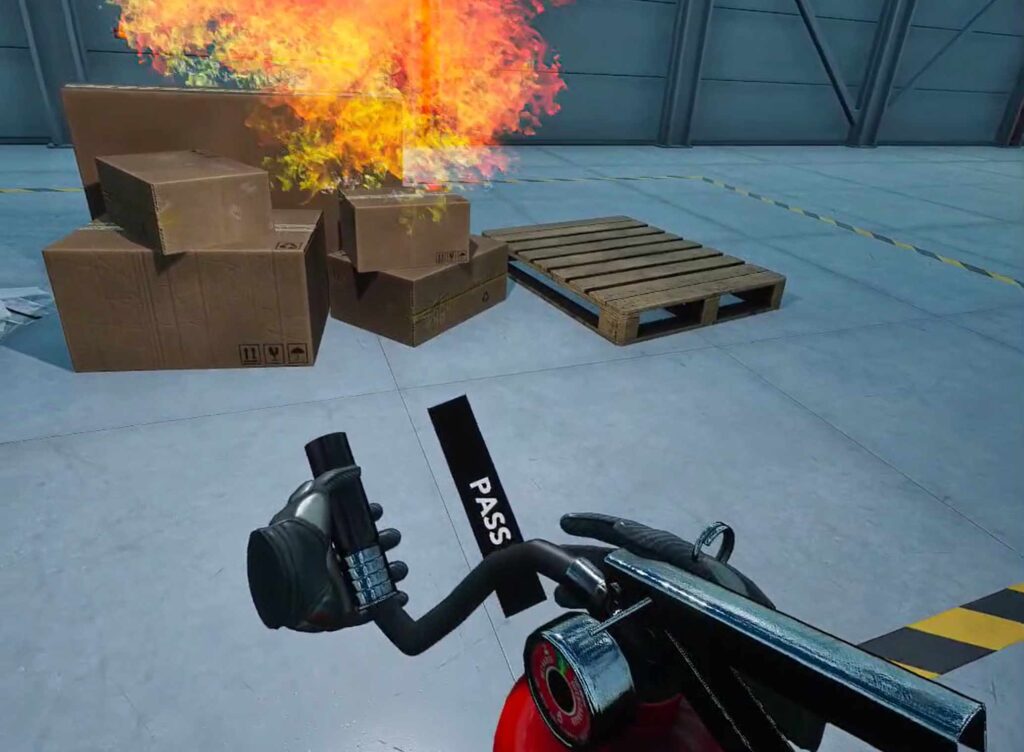 Using the power of Meta Quest 3, trainees can engage with scenarios using either the standard VR controllers or a custom fire extinguisher prop controller developed by Fire Shield for added realism and tactile feedback.